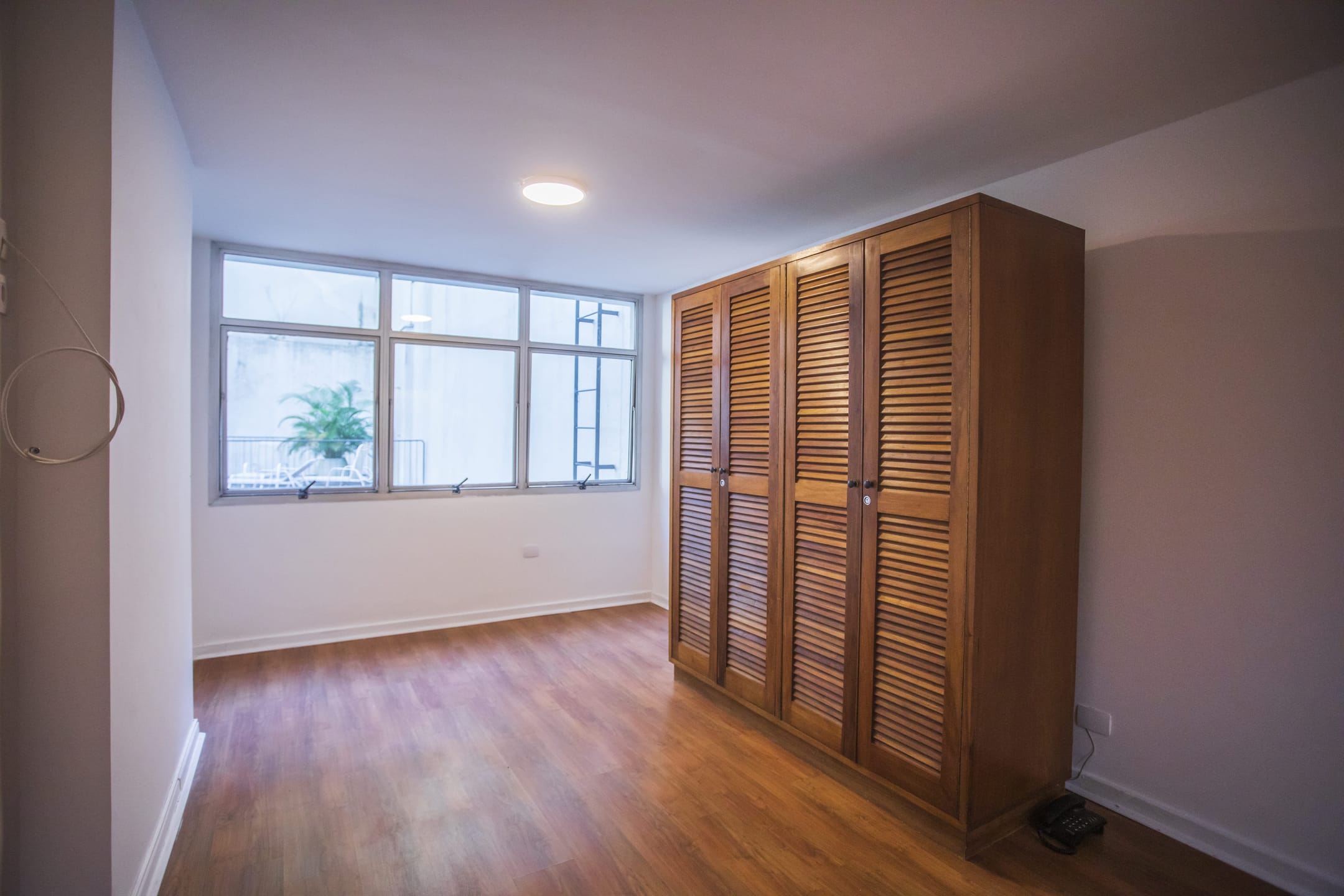 IPTU: R$ 1.527,20 Condomínio: R$ 651,80 Total: R$: 4.198,44Studio de 34m², arejado e iluminado, com sala integrada à cozinha. Possui armário no quarto, ar-condicionado, piso laminado, armário na cozinha, armário no banheiro e aquecimento elétrico. Aceita pet. Condomínio conta com sala de jogos, salão de festas, sala de ginástica, churrasqueira, elevador, lavanderia coletiva e portão eletrônico. Excelente localização em bairro de vida à pé, bem próximo ao Mackenzie, farmácias, supermercados, padarias, hospitais, vasto comércio e a transporte público. Excelente oportunidade, agende já a sua visita!