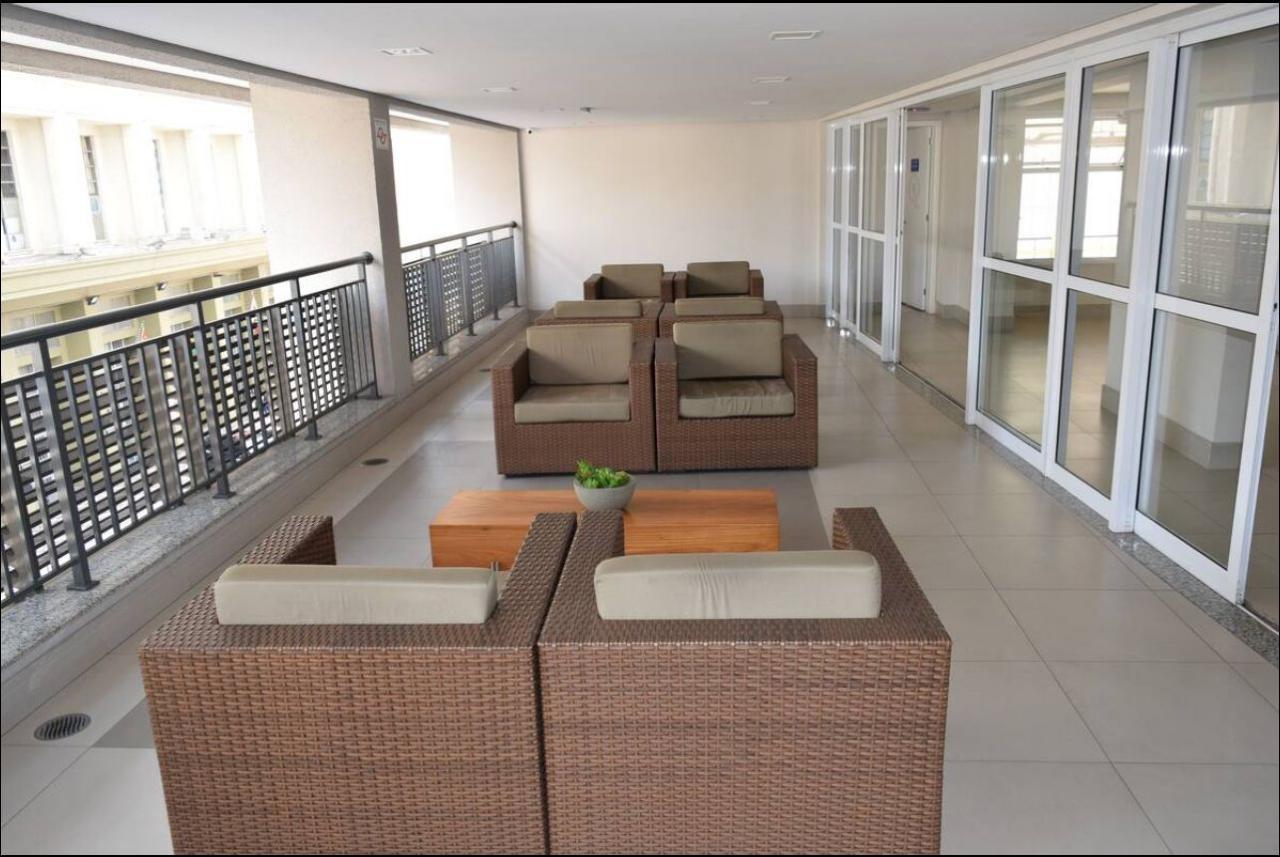 Apartamento com 32 m² de área útil, com 1 dormitório, sendo 1 suíte, varanda e uma vaga de garagem. O prédio conta com sauna, piscina, academia, salão de festas e portaria 24 horas.